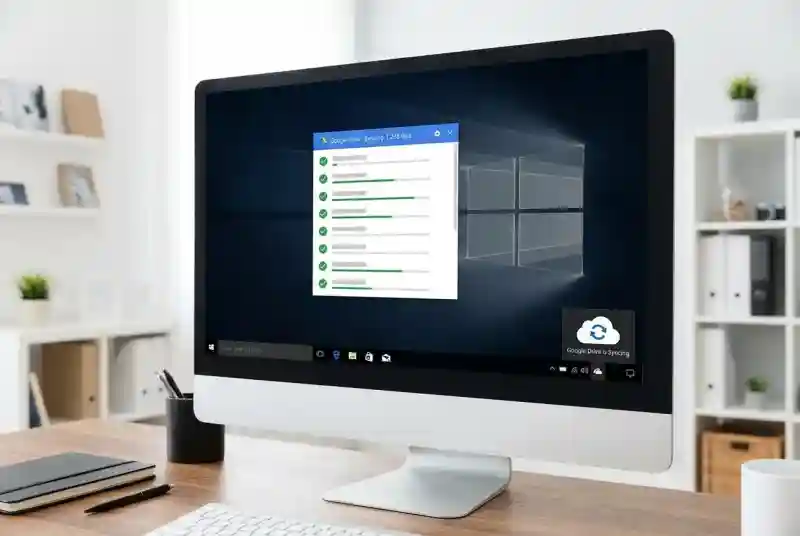 구글 드라이브 클라우드 동기화 아이콘이 있는 데스크톱 화면
