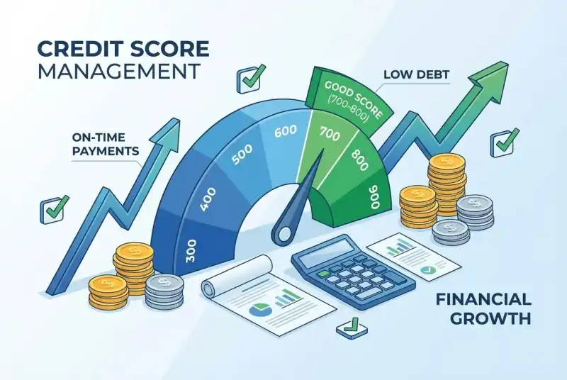 신용점수 관리 개념을 나타내는 금융 일러스트